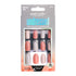 Includes 24 nails, a nail file, glue, and a cuticle stick
