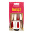 Includes 24 nails, a nail file, glue, and a cuticle stick.